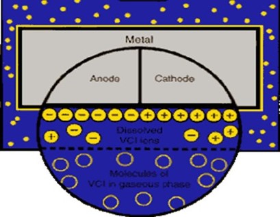 Devices designed to provide corrosion protection for metal components, parts enclosed in non-ventilated control boxes, cabinets with multi metal protection